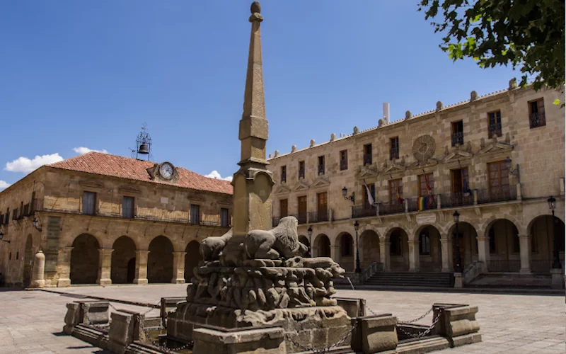 La plaza en sus alrededores alberga una gran cantidad de monumentos arquitectónicos que bien vale la pena visitar y conocer, tal es el caso de la antigua Casa del Común, la Iglesia de Santa María la Mayor, la Torre de Doña Urraca y el Palacio de la Audiencia.